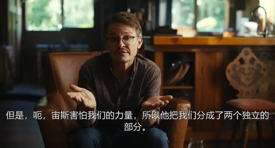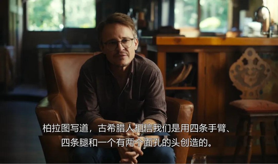 它来自古希腊哲学家柏拉图。片中信奉“合体”的邪教人士杰米也提到了这点。