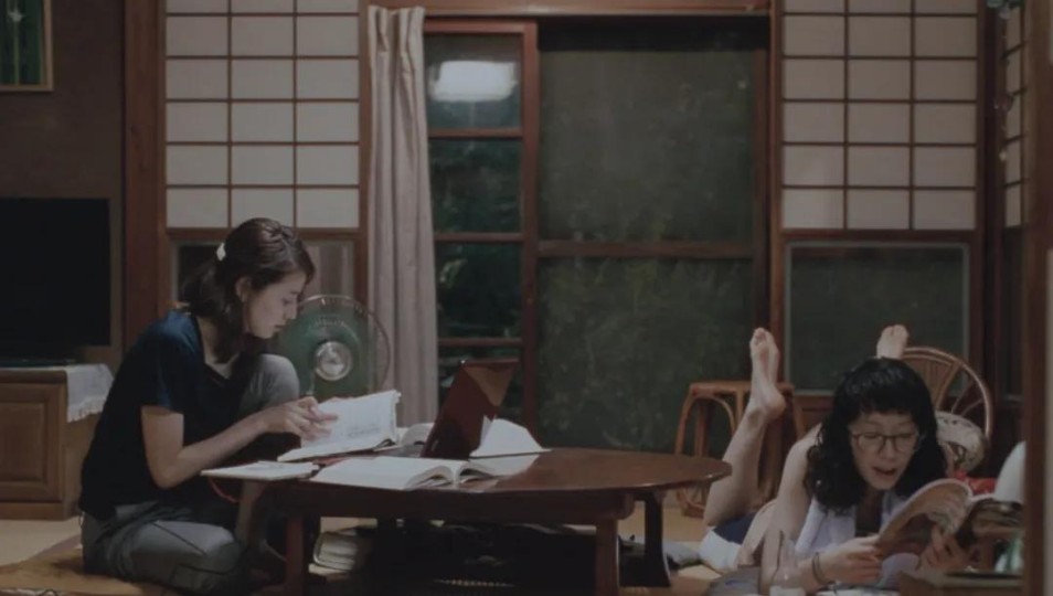 这样的画面,其实在影片中几乎处处可见。多到什么程度呢,你在电影中随意拖动进度条,那么有五成的概率是会跳转到她们躺在榻榻米上看书或者是在梅子树前乘凉。那些看似琐碎的瞬间——梅子掉落在草地上,烟火在夜空中绽放,厨房里传来油煎声与笑声——共同编织出了一种延展性的时光感。